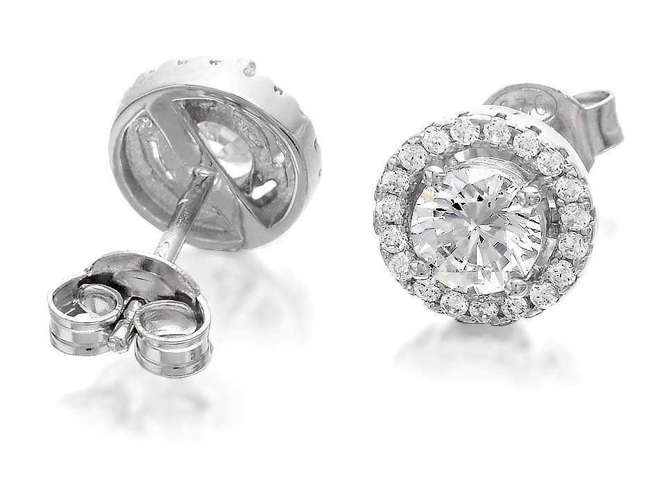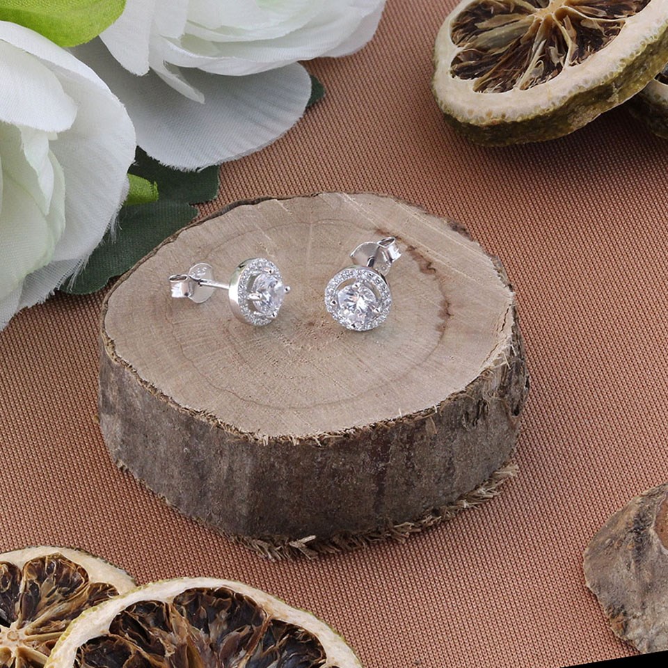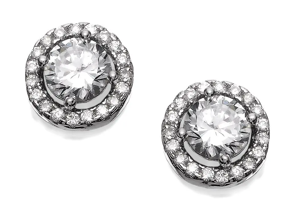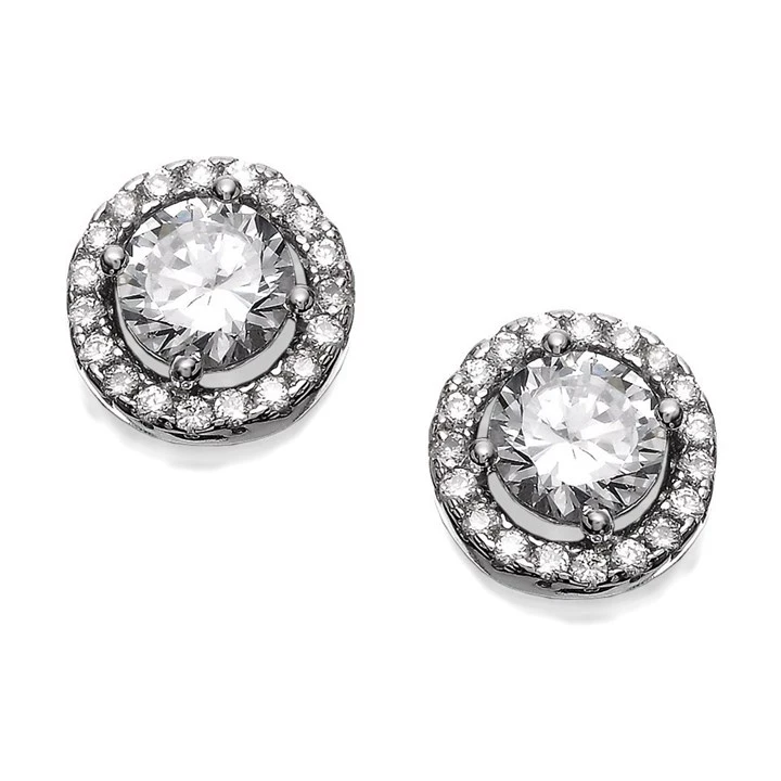 Silver Cubic Zirconia Cluster Stud Earrings - 8mm - F0436