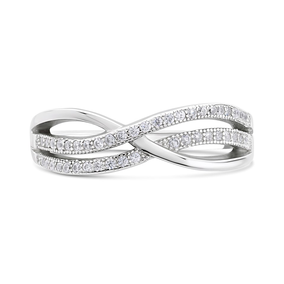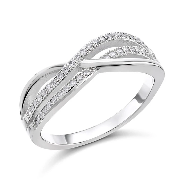 Silver Cubic Zirconia Crossover Band Ring - F6074