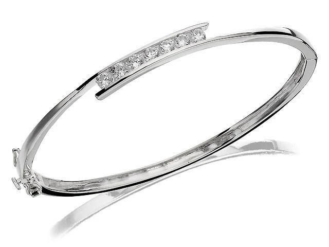 Silver Cubic Zirconia Crossover Hinged Bangle - F2716