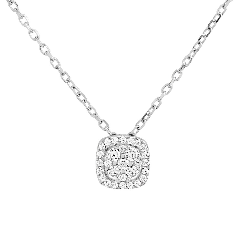 Silver Cubic Zirconia Cushion Cluster Necklace - F35135