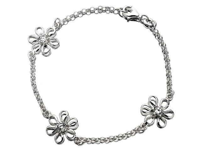 Silver Cubic Zirconia Daisy Bracelet - 7.5in - F1423