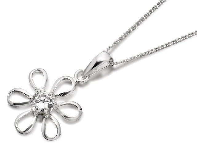 Silver Cubic Zirconia Daisy Necklace - F3403