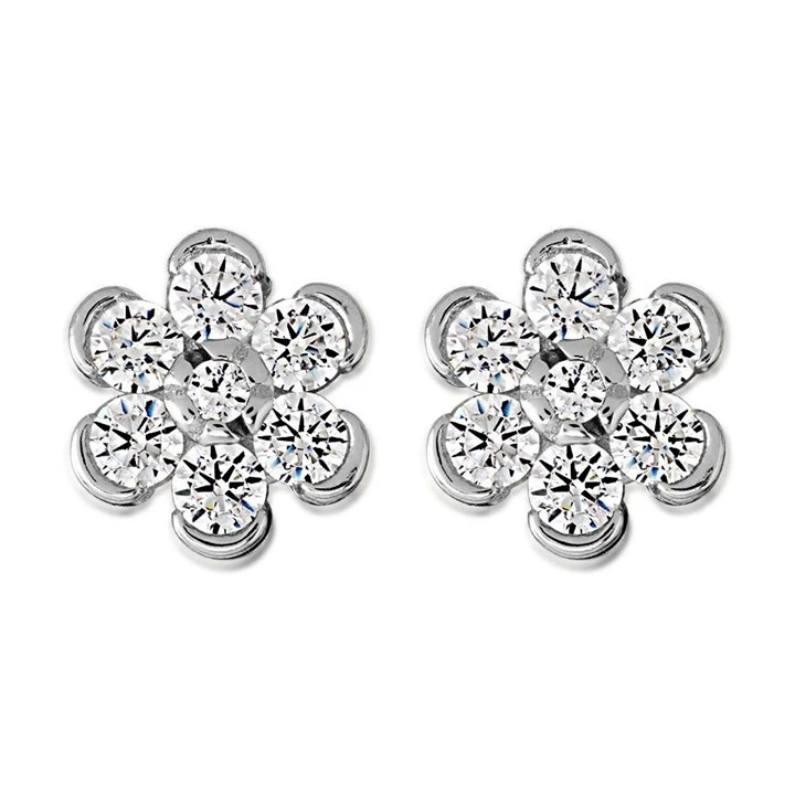 Silver Cubic Zirconia Daisy Stud Earrings - 6mm - F04182