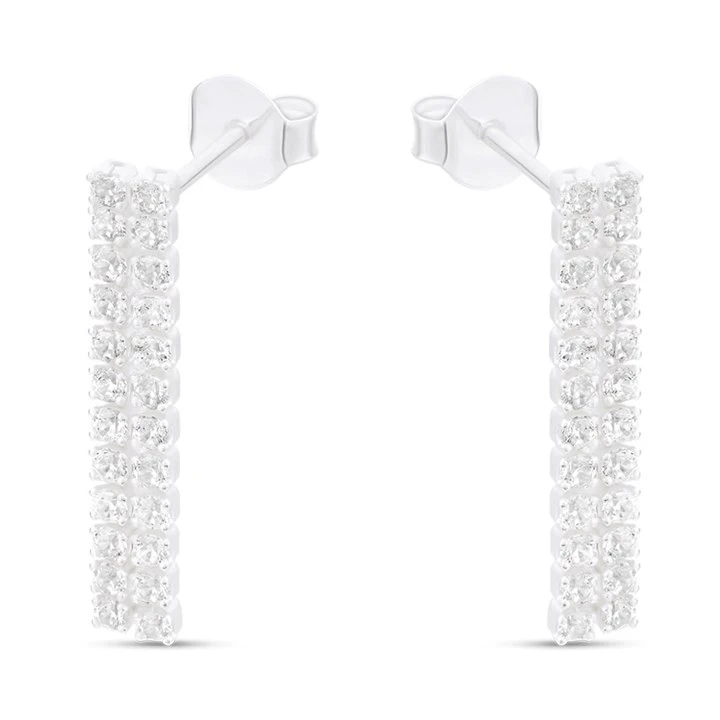 Silver Cubic Zirconia Double Line Drop Earrings - F11105