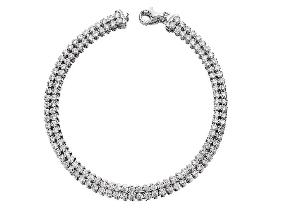 Silver Cubic Zirconia Double Row Tennis Bracelet - 7.5in - F1424