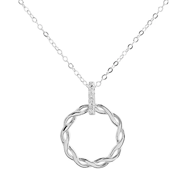 Silver Cubic Zirconia Entwined Circle Necklace - F33024