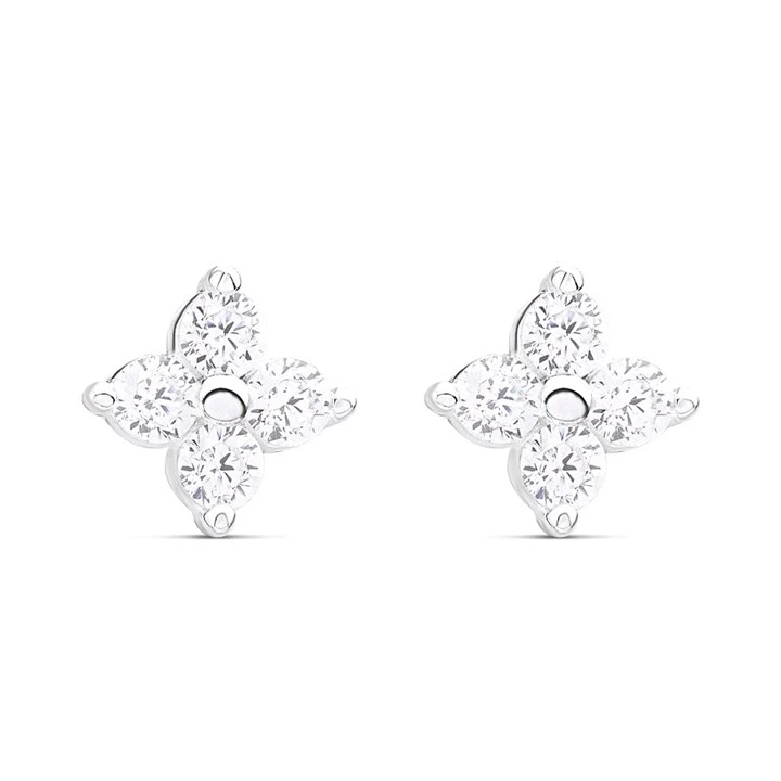 Silver Cubic Zirconia Flower Stud Earrings - 5mm - F04041