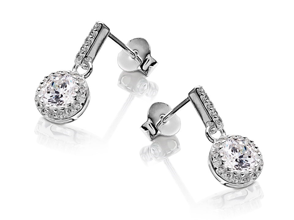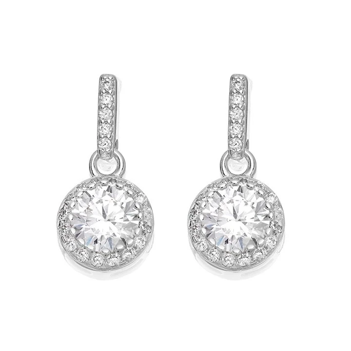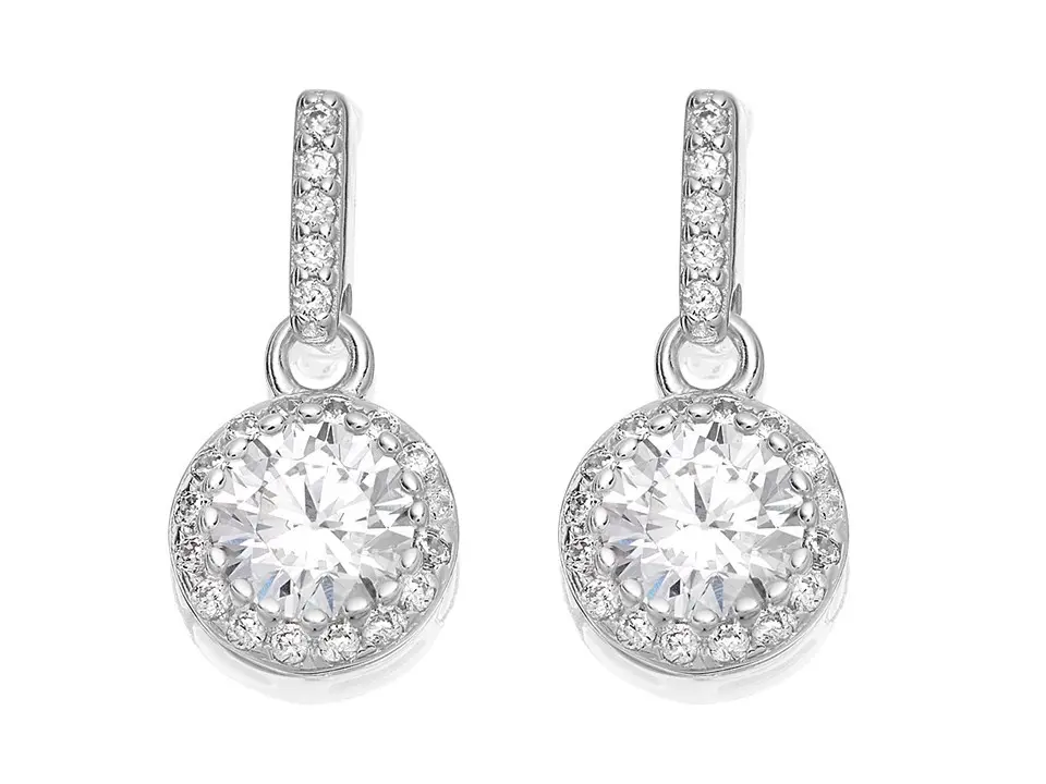 Silver Cubic Zirconia Halo Drop Earrings - 14mm drop - F11001