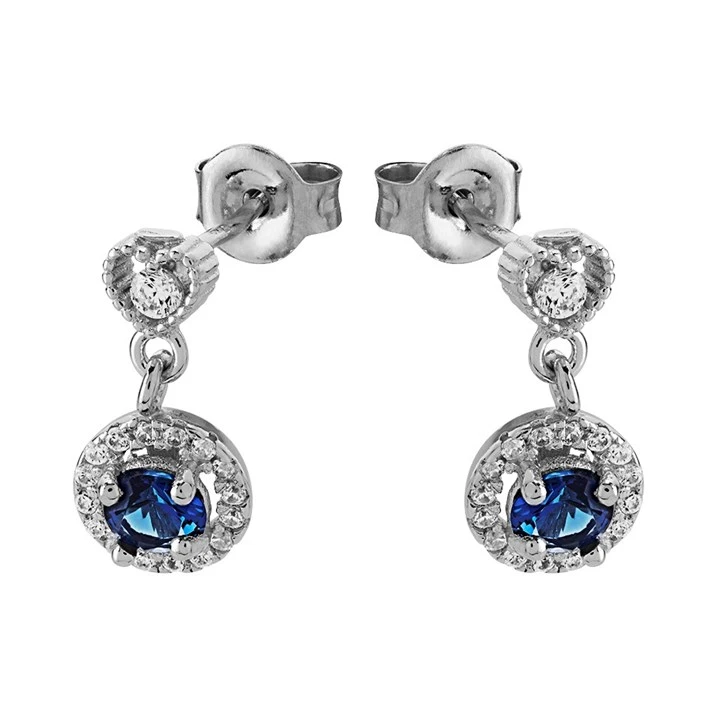 Silver Cubic Zirconia Halo Drop Earrings - 14mm drop - F11014