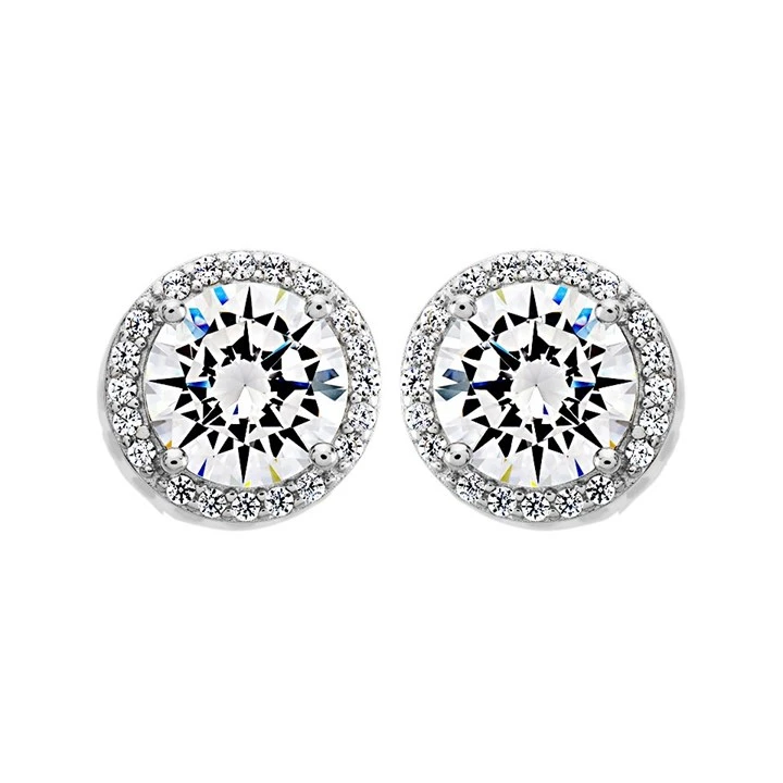 Silver Cubic Zirconia Halo Stud Earrings - 9mm - F04168