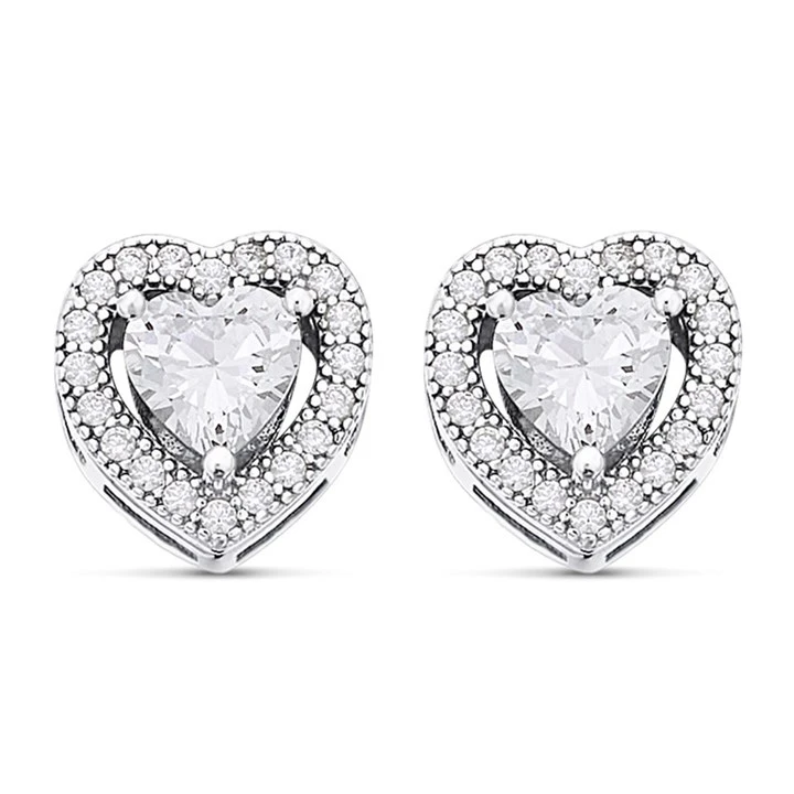 Silver Cubic Zirconia Heart Halo Stud Earrings - 9mm - F04028