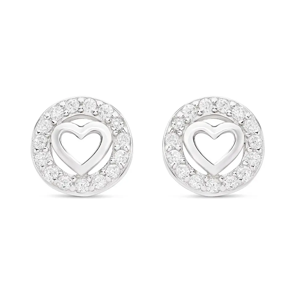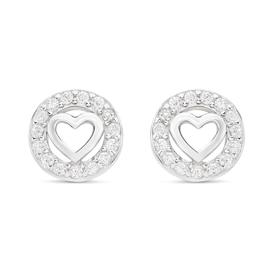 Silver Cubic Zirconia Heart In Circle Stud Earrings - 6mm - F04025