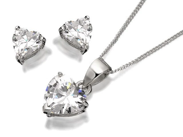 Silver Cubic Zirconia Heart Pendant And Earring Gift Set - F3188