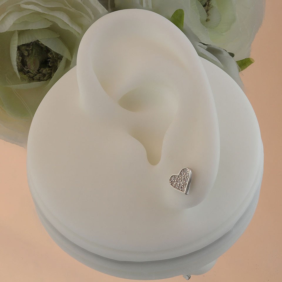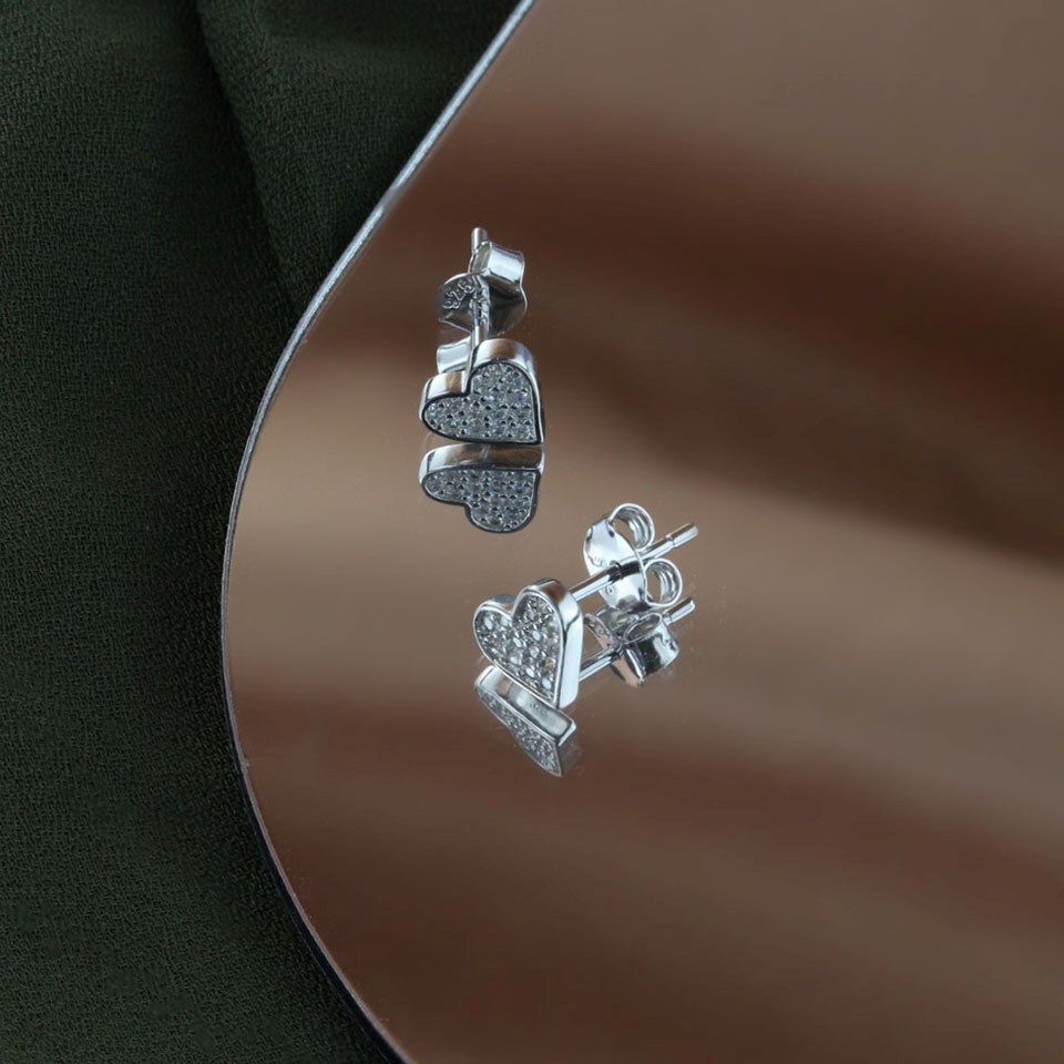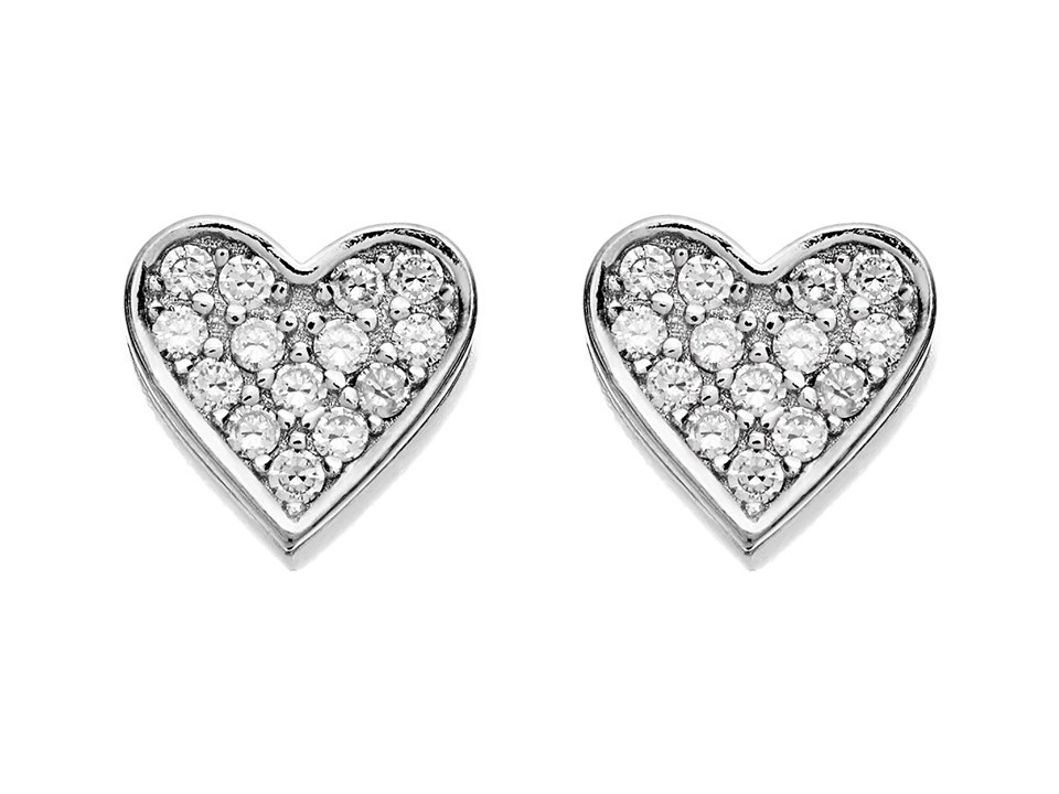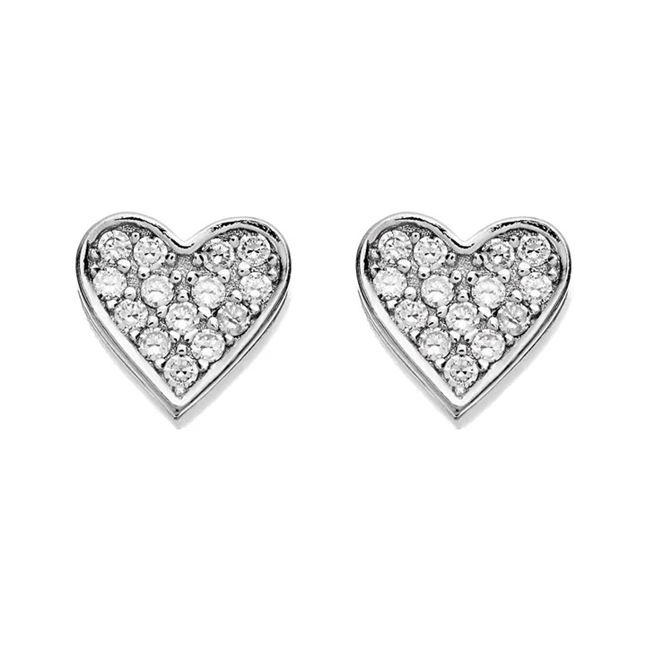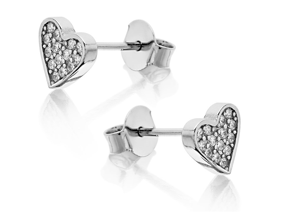 Silver Cubic Zirconia Heart Stud Earrings - 7mm - F04026