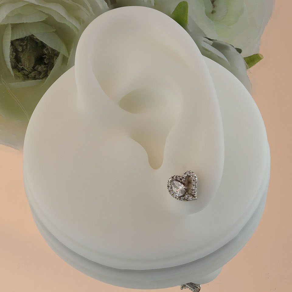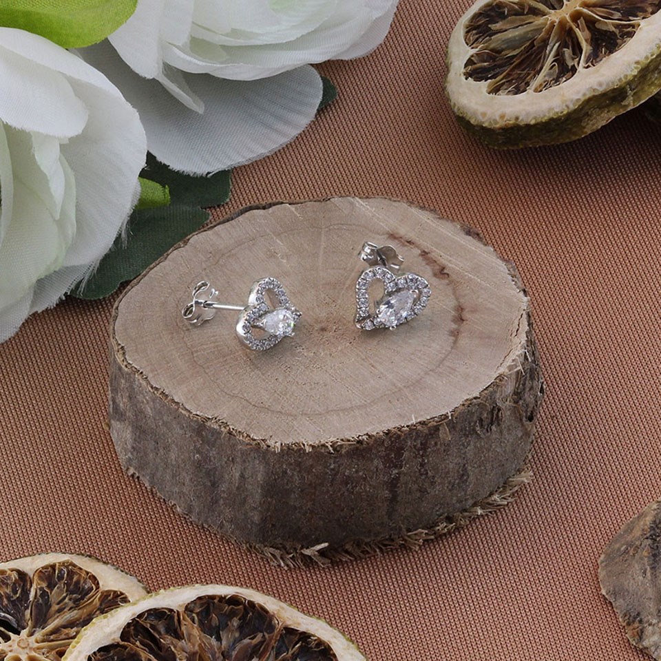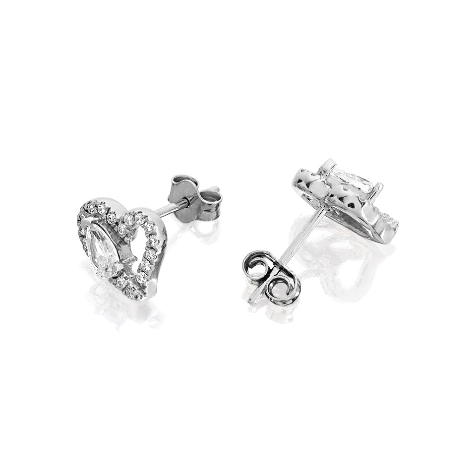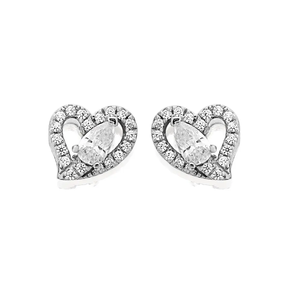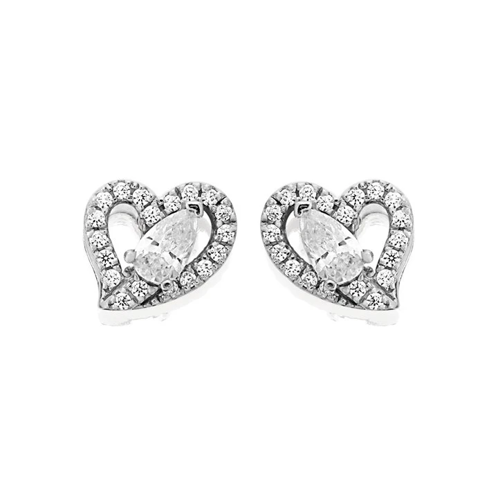 Silver Cubic Zirconia Heart Stud Earrings - 9mm - F04121