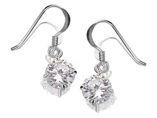 Silver Cubic Zirconia Hook Wire Drop Earrings - 10mm drop - F0764