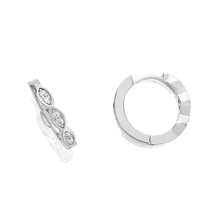 Silver Cubic Zirconia Huggie Hoop Earrings - 14mm - F1392