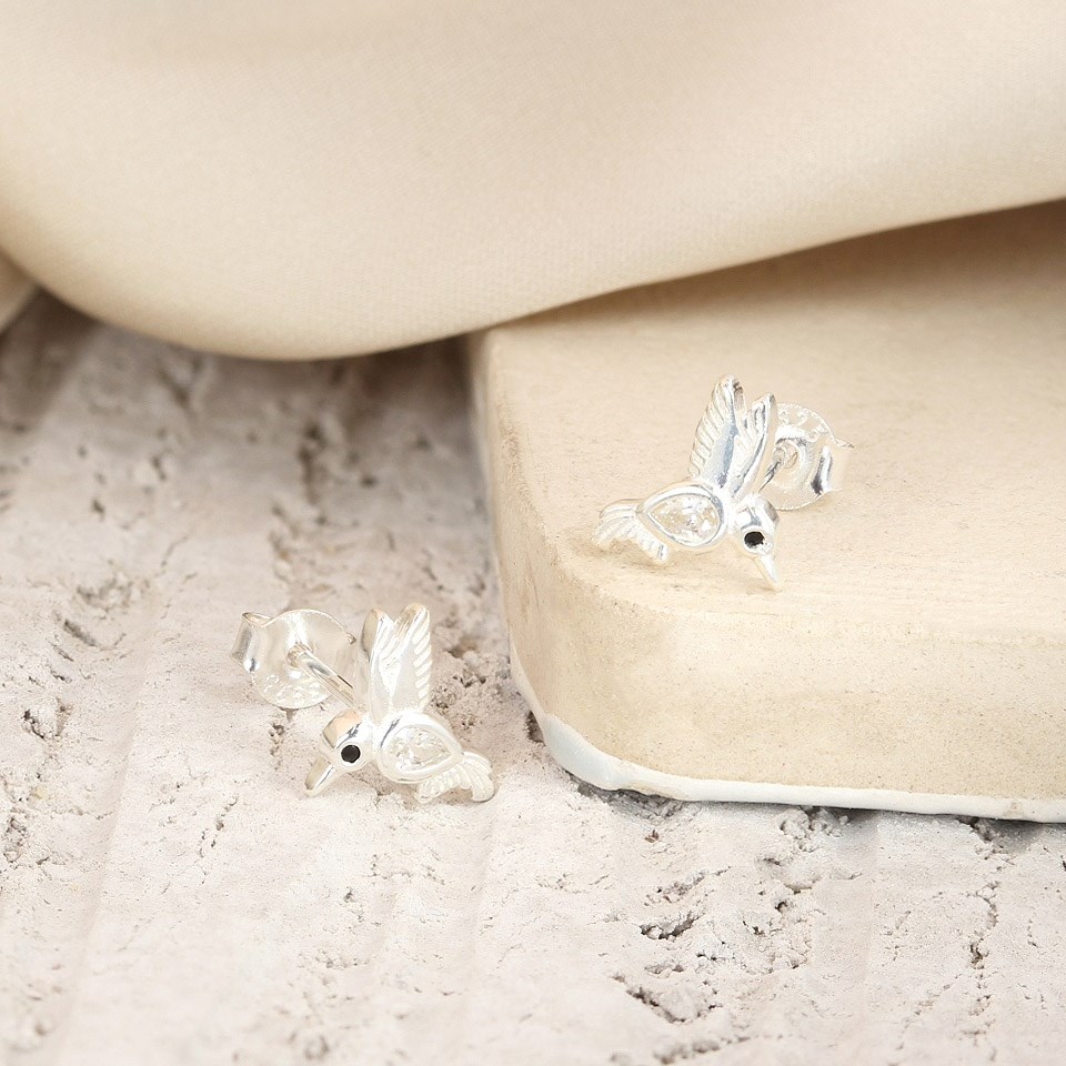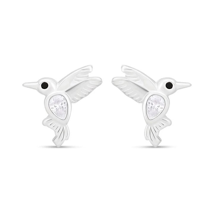 Silver Cubic Zirconia Hummingbird Stud Earrings - F04206