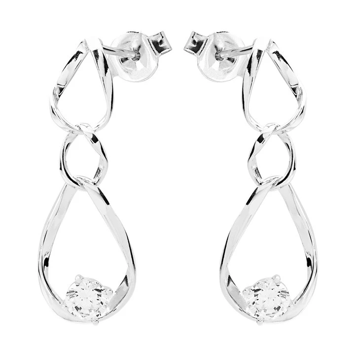 Silver Cubic Zirconia Infinity Link Drop Earrings - 27mm drop - F1212