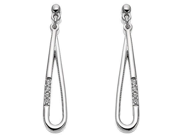 Silver Cubic Zirconia Loop Drop Earrings - 30mm drop - F1122