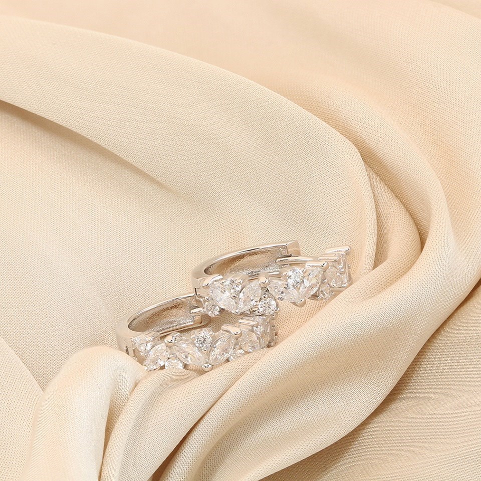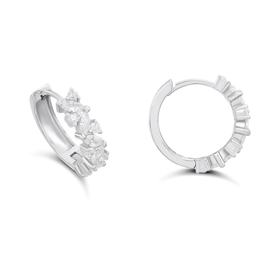 Silver Cubic Zirconia Mixed Cut Hoop Earrings - F13157