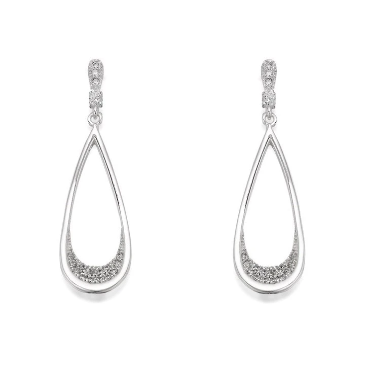 Silver Cubic Zirconia Open Teardrop Earrings - 35mm drop - F1184