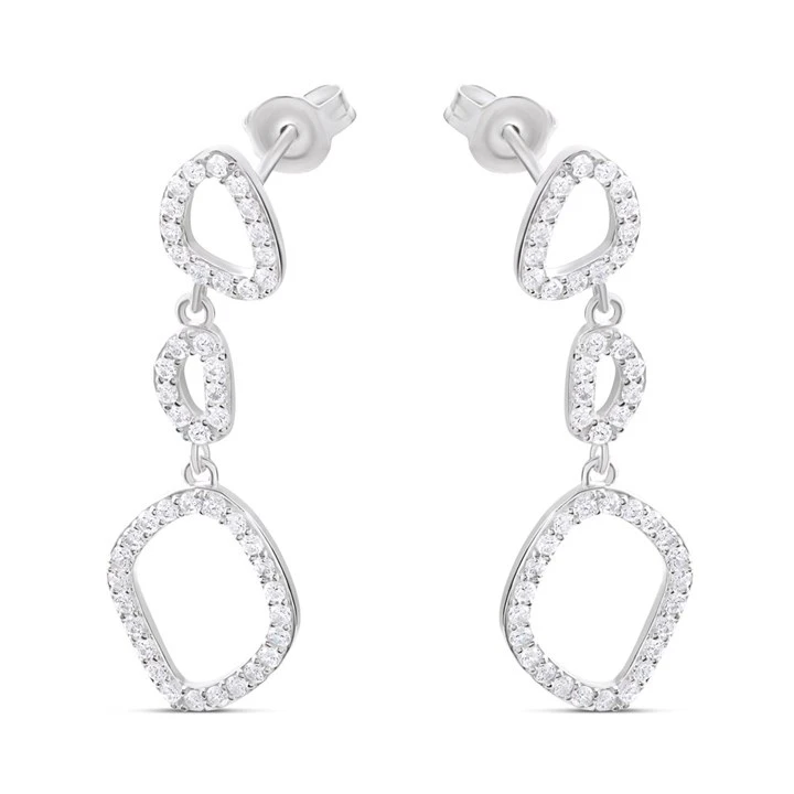 Silver Cubic Zirconia Organic Shape Drop Earrings - 35mm drop - F11102
