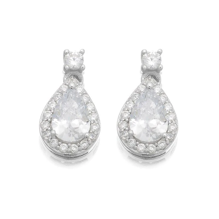 Silver Cubic Zirconia Pear Drop Earrings - 10mm drop - F1185