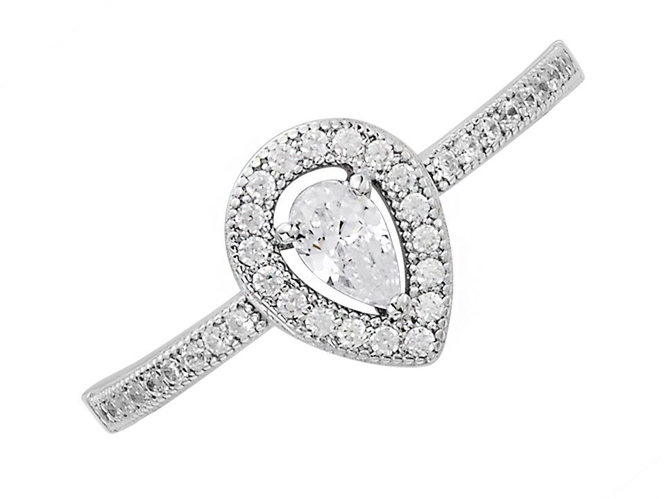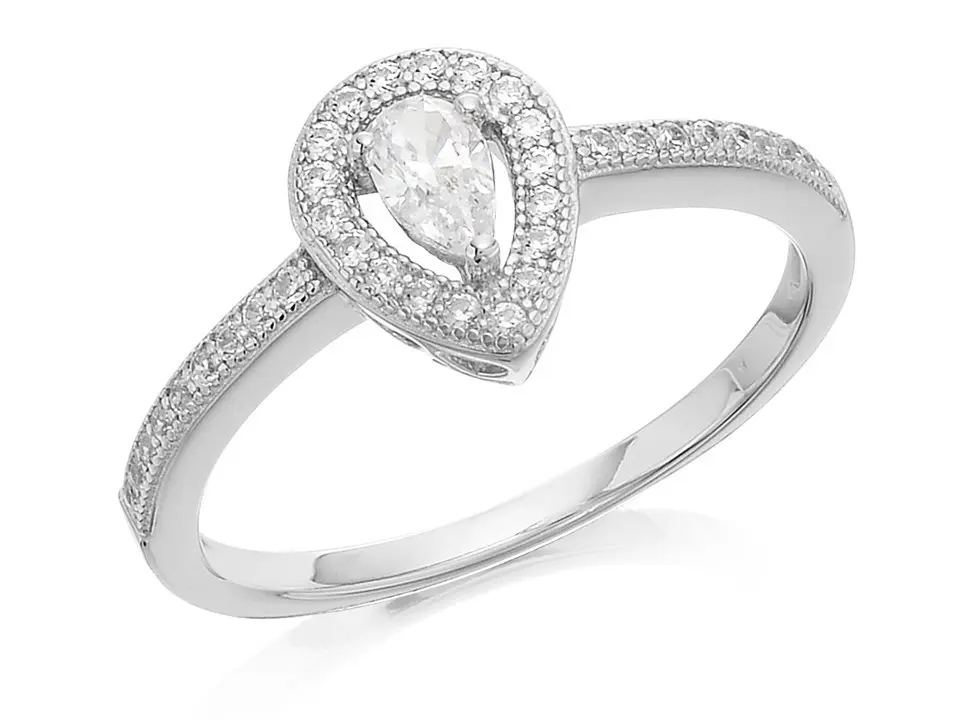 Silver Cubic Zirconia Pear Halo Cluster Ring - F6032