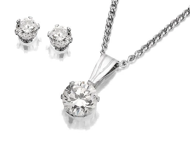 Silver Cubic Zirconia Pendant And Earring Gift Set - F3155
