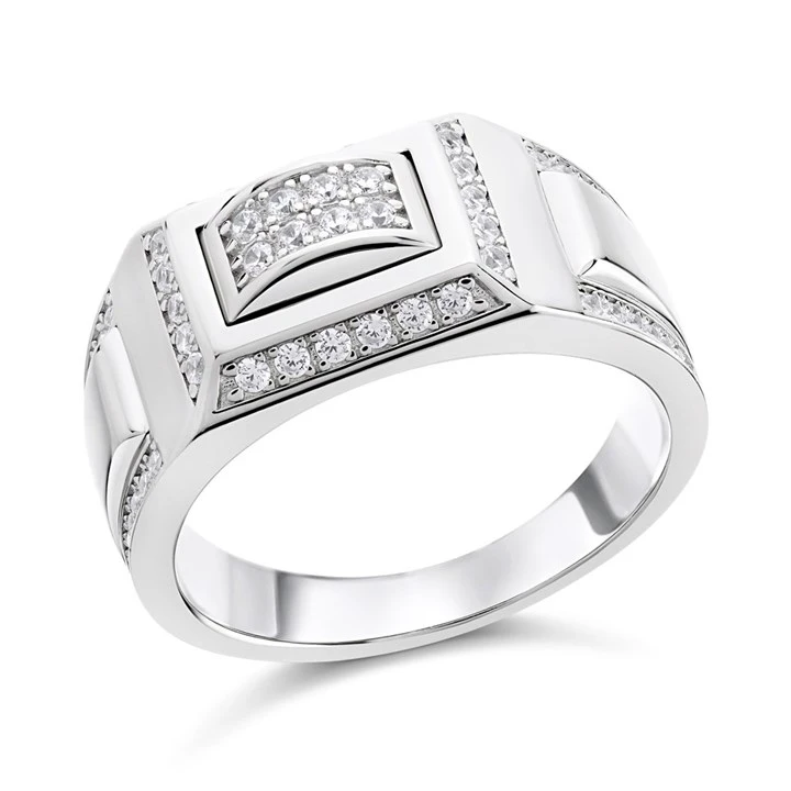 Silver Cubic Zirconia Signet Ring - F5117