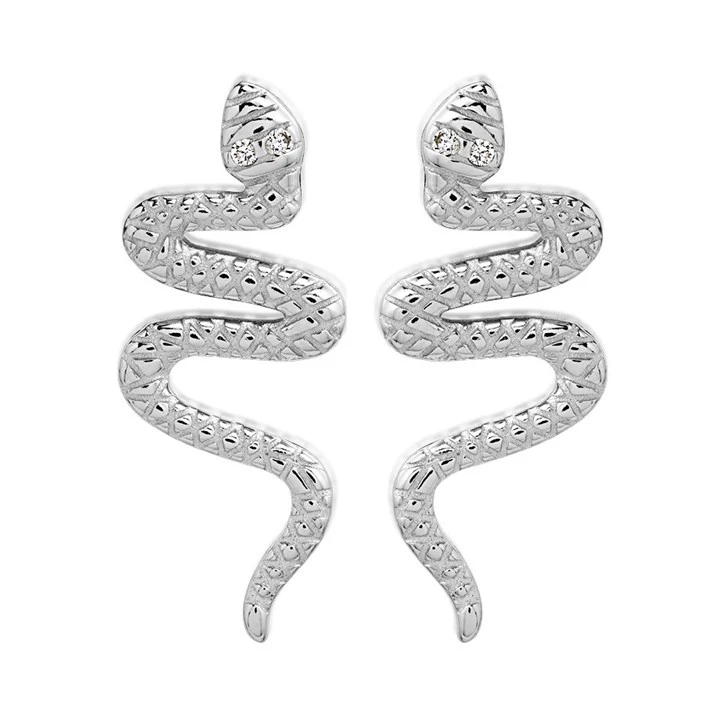 Silver Cubic Zirconia Snake Stud Earrings - 20mm - F11024