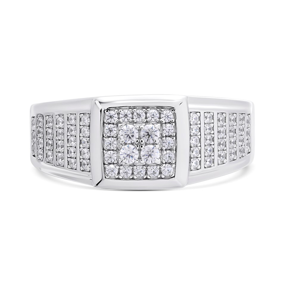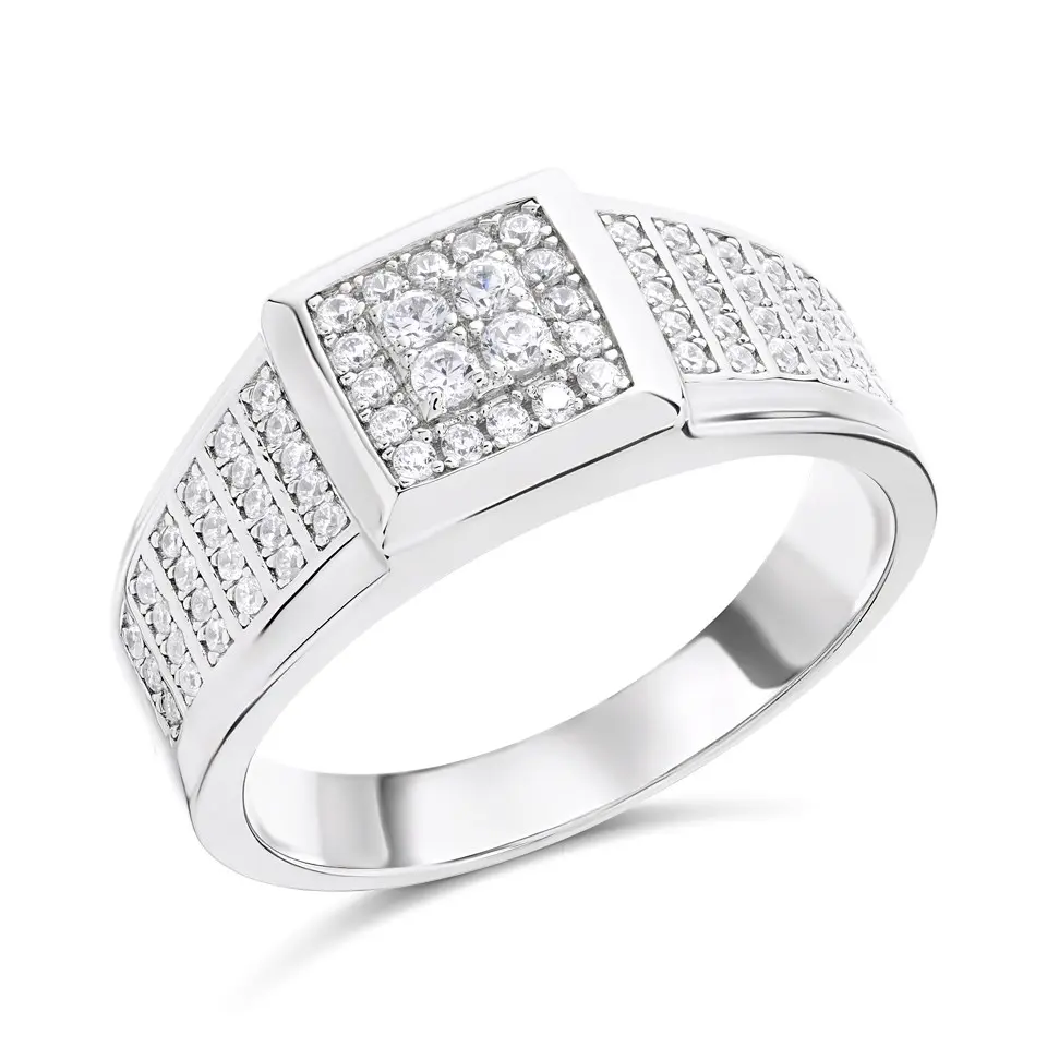 Silver Cubic Zirconia Square Signet Ring - F5118