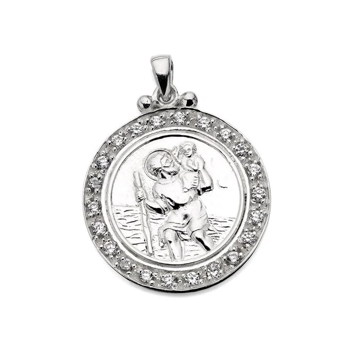 Silver Cubic Zirconia St. Christopher Medallion - 22mm - F4730