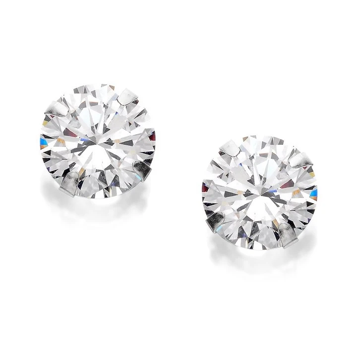Silver Cubic Zirconia Stud Earrings - 8mm - F0307