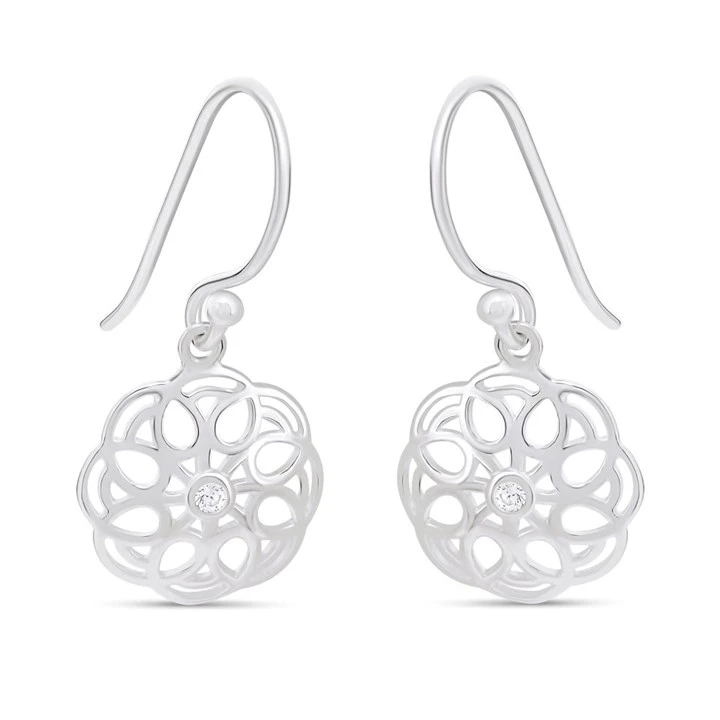 Silver Cubic Zirconia Swirl Circle Earrings -12mm - F08013