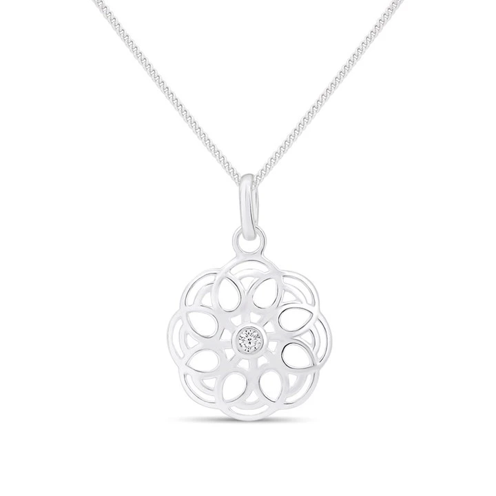 Silver Cubic Zirconia Swirl Circle Pendant -14mm - F33035
