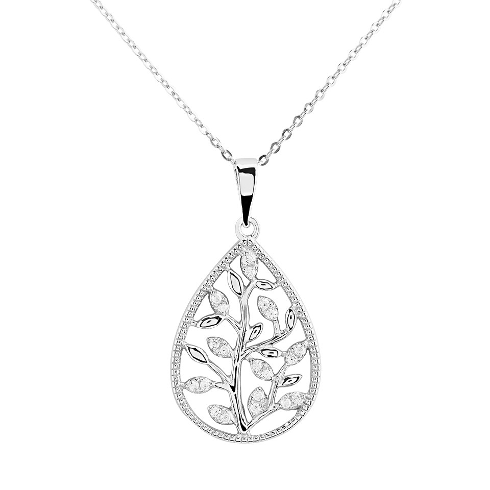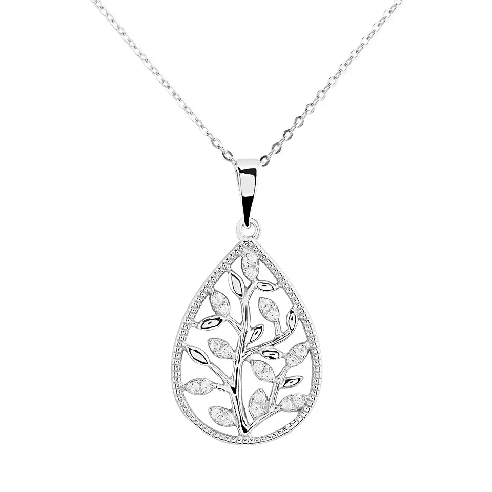 Silver Cubic Zirconia Tree Of Life Necklace - F33022