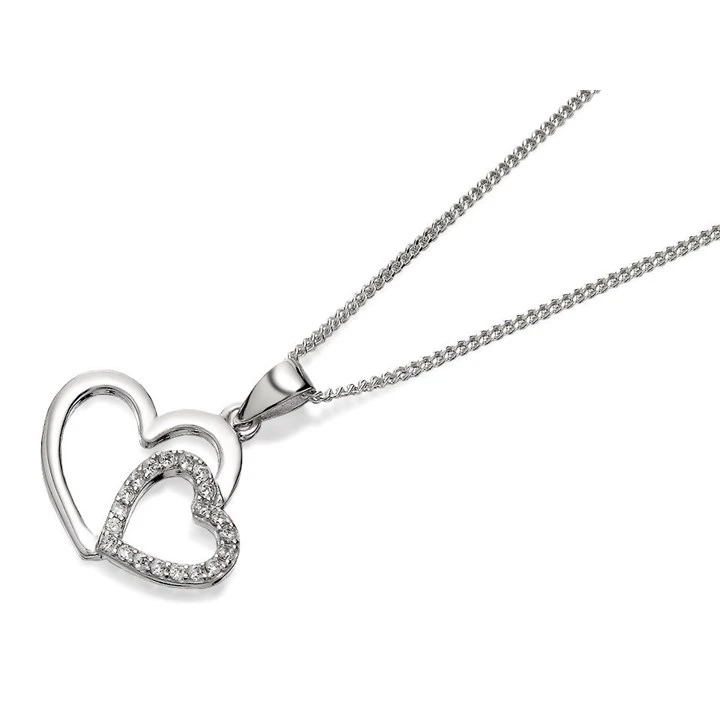 Silver Cubic Zirconia Two Hearts Necklace - F3497