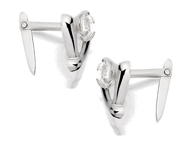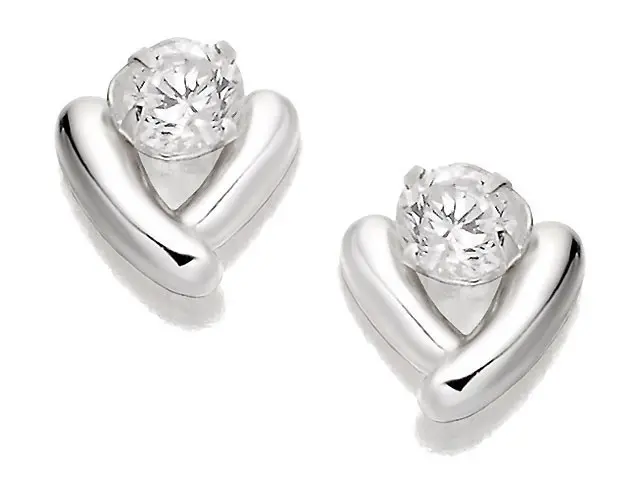 Silver Cubic Zirconia 'V' Andralok Earrings - 7mm - F9932
