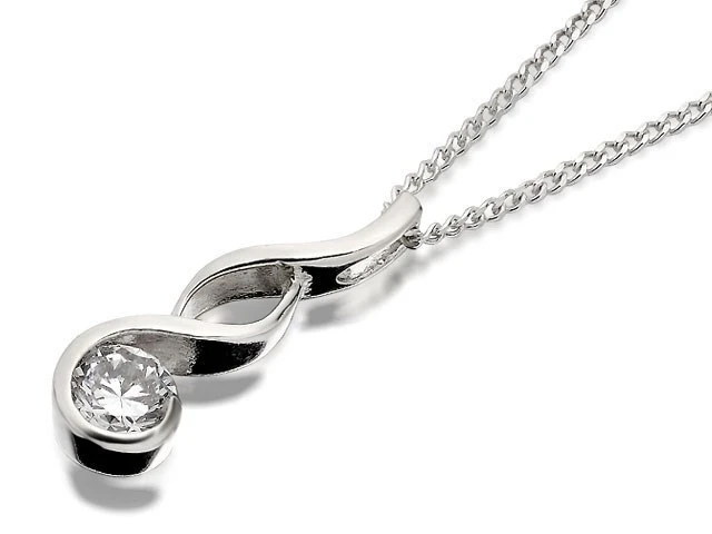 Silver Cubic Zirconia Wave Necklace - F3380