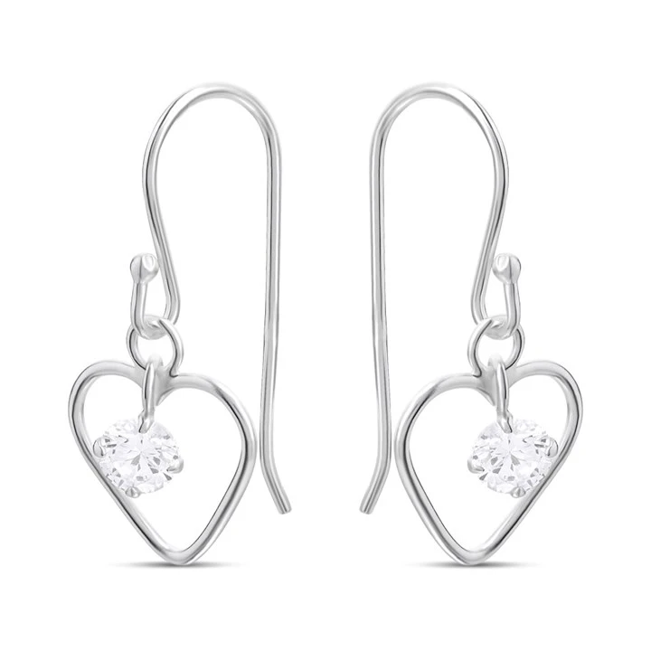 Silver Cubic Zirconia Wire Open Heart Drop Earrings - F0883