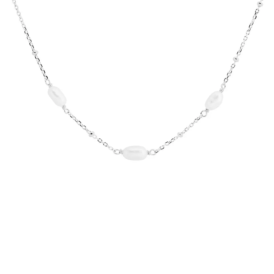 Silver Cultured Freshwater Pearl Station Necklace - F9513