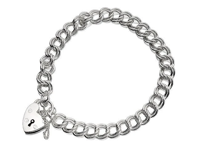 Silver Curb Bracelet With Heart Padlock - 7in - F1808
