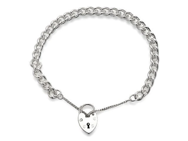 Silver Curb Bracelet With Heart Padlock - 7in - F1959