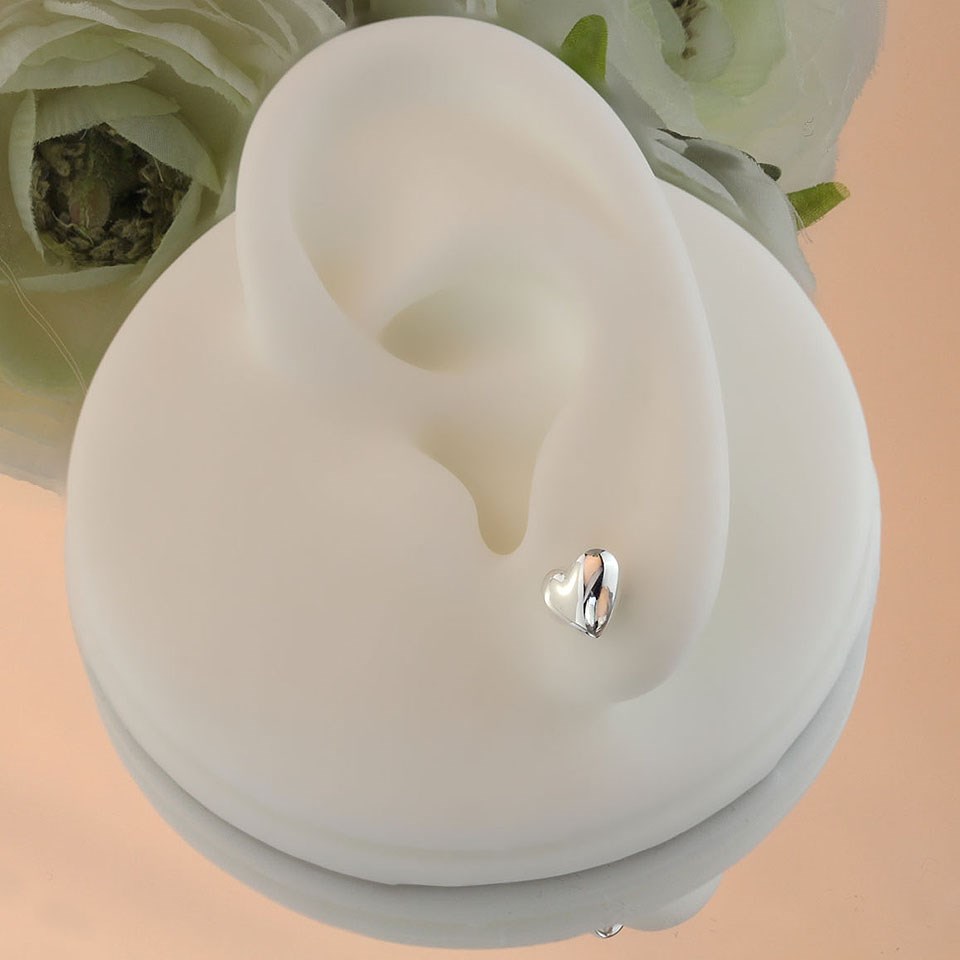 Silver Curvy Heart Stud Earrings - 7mm - F0264