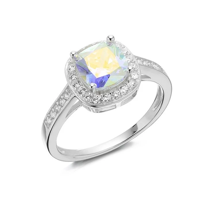 Silver Cushion Cubic Zirconia Halo Ring - F6034