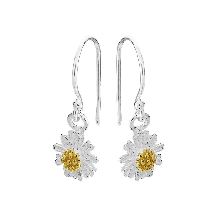 Silver Daisy Hook Wire Earrings - 21mm drop - F05018