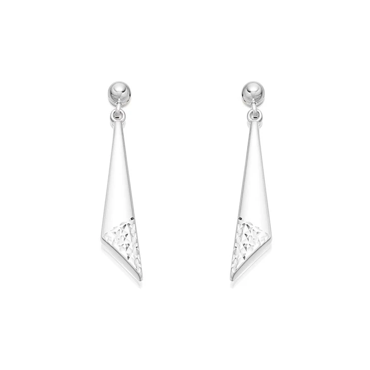 Silver Diamond Cut Drop Earrings - 36mm drop - F1009