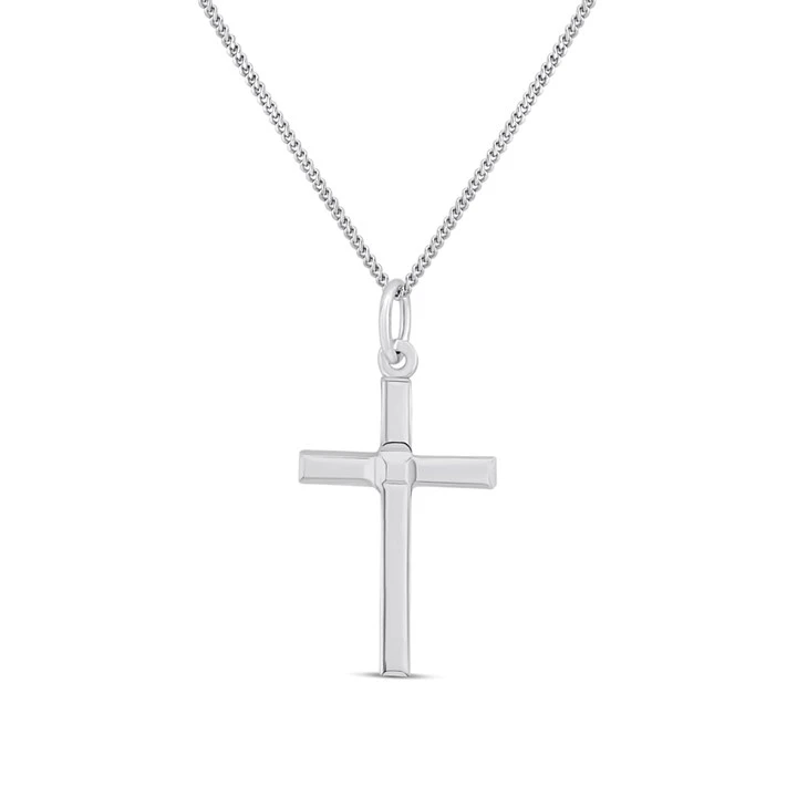 Silver Diamond Cut Edge Cross Necklace - F3714